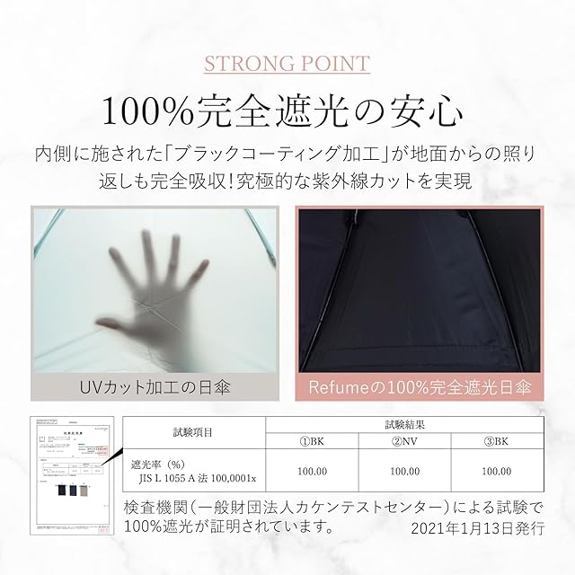 シミ対策やアンチエイジングにもピッタリなRefume(レフューム)の完全遮光折り畳み日傘。
