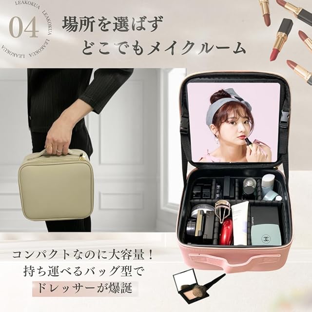 商品名:LEAKOKUA(レアコクア) メイクボックス 【高さアップ×鏡付き】 メイクポーチ 大容量 コスメボックス 化粧ポーチ コスメポーチ プロ用 収納ケース 持ち運び 小物入れ (02.beige)