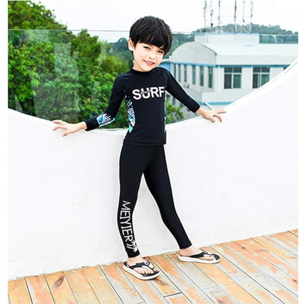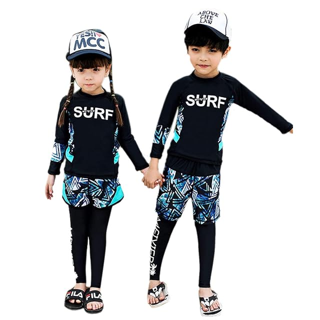[YUEGUANG] キッズ 水着 セパレート長袖 UVカット 日焼け止め 男の子 女の子 3点セット ラッシュガード ジュニア 水遊び ビーチ プール 温泉 (boy-3点セット, 120cm) | Trend Design BASE店