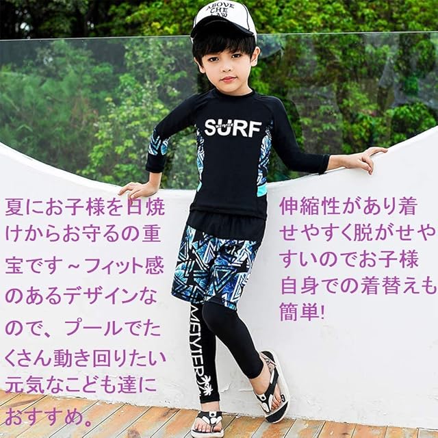 商品名:[YUEGUANG] キッズ 水着 セパレート長袖 UVカット 日焼け止め 男の子 女の子 3点セット ラッシュガード ジュニア 水遊び ビーチ プール 温泉 (boy-3点セット, 120cm)