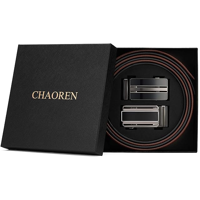 [CHAOREN] ベルト メンズ 2本セット ビジネス - 大きいサイズ オートロック式 ベルト 穴なし 革 - 無段階調整 スーツ 紳士 ギフトボックス付 | Trend Design BASE店