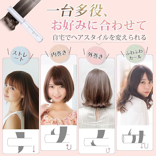 一本で、カールヘアにしたいとき、ストレートに決めたいとき、ヘアアイロンを使えば気分に合わせて自在にヘアスタイルをアレンジできます。また、ションプレートは髪に優しいセラミックコーティングを採用し、髪が傷つくのを防ぎます。初心者の方でも思い通りのヘアセットが可能になります。メンズ レディース両用タイプです。