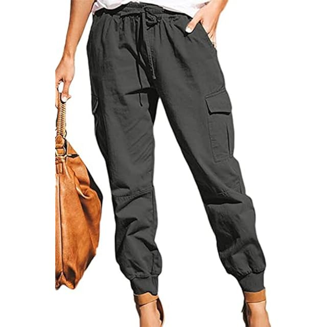 [美脚パンツ] ウエストゴム カーゴパンツ レディース サイドポケット ゆったり イージー 夏ズボン カジュアル 春 秋 無地 暑くない 楽ちん ジョガー 脚長効果 きれいめ コーディネート ファッション オフィス おしゃれ 大人 可愛い 着こなし シルエット ストリート スポーツ 着回し トレンド グレー M | Trend Design BASE店