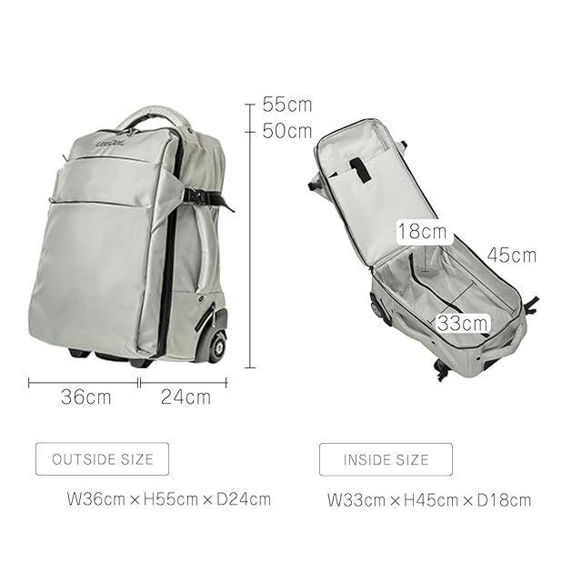 【サイズ】約横36cmx奥行き24cmx取手を含む高さ55cm【重量】約2.3キログラム【容量】約42L【素材】高密度ナイロン(一部色は防水加工 キャリーバー:強化アルミ合金 キャスター:強化PVC【ご購入の際の注意点】光沢のある生地のため、撮影時の照明や光の反射で実物と色味が異なる場合がございます。当ページに記載のサイズはスタッフが計測した実寸値です。ソフトキャリーバッグのため、布地の膨らみ方で誤差が出る場合がございます。予めご了承ください。