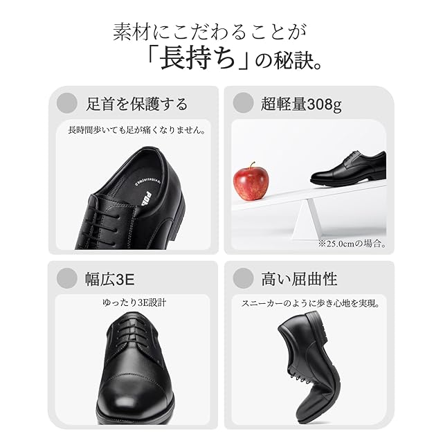 【跳ねる弾力性!IPEVA素材】スニーカー素材を使用し、ランニングシューズのような弾力性と優れた柔軟性・屈曲性を実現。長時間歩いても足に負担をかけず、快適さとビジネスシューズらしい外観を両立。