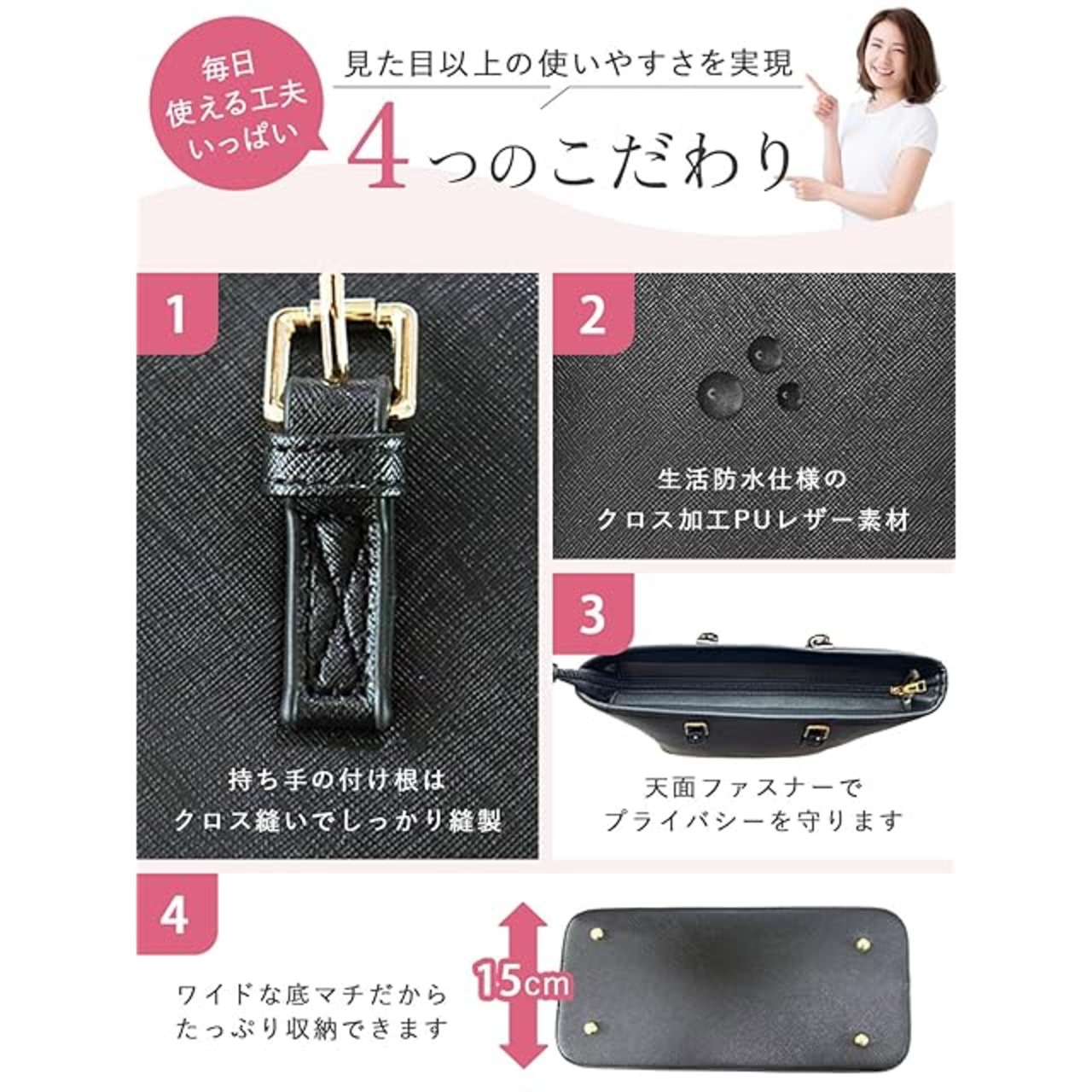 商品名:[アンコール] ビジネスバッグ 就活 リクルート 【美フォルム梱包 収納のプロ監修】 入学式 A4 バッグ レディース 面接マナーブック付 通勤バッグ 選べる裏地色 トートバッグ 自立 かばん 大容量 面接 (裏地:グレイッシュピンク)