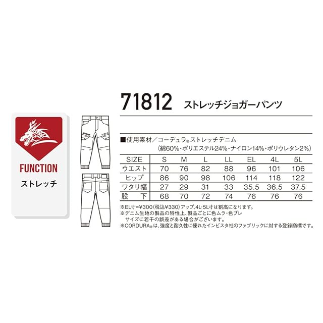 商品名:Z-DRAGON ジードラゴン ストレッチジョガーパンツ 71812 作業服 通年 コーデュラ デニム 自重堂 LL 143インディゴ