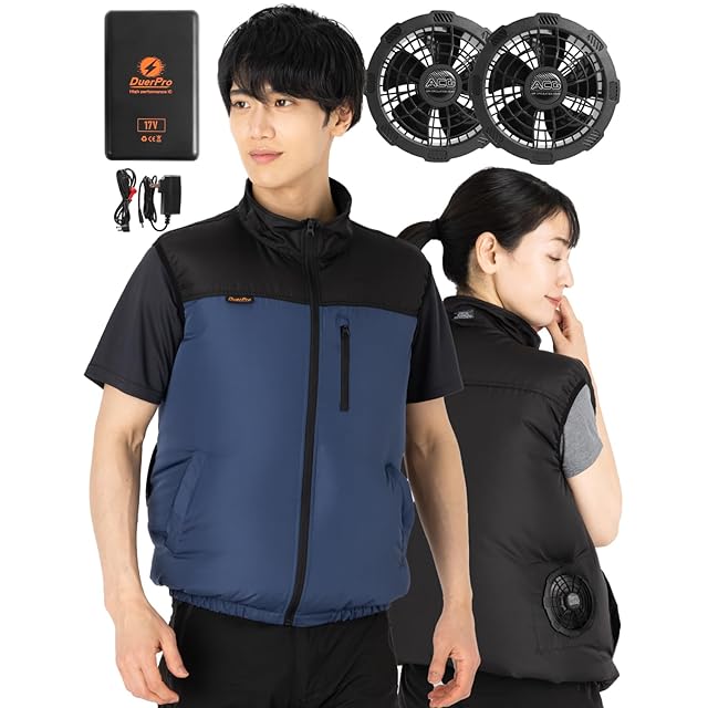 [Duerfusa] 空調 ベスト ダークネイビー3L-バッテリーセット 17V