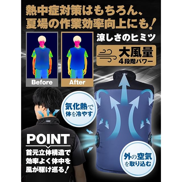 【サイズ/カラーとご注意事項】 サイズ:M/L/LL/3L/4L カラー:ダークネイビー/ブラック セット内容:ベスト/ファン/バッテリー/ケーブル/ACアダプター/取り扱い説明書 ※サイズ感は商品ページ内画像とサイズ表をご参考下さい。品質には万全を期しておりますが、万が一不備やサイズが合わないなどございましたら、交換・返品など誠心誠意ご対応させていただきますので、お気軽にカートボックス下の「Duerfusa」から「質問する」よりご連絡ください。