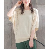 [n'OrLABEL] オシャレウォーカー サマーセーター レディース【透かし編み切替ドルマン】 春 夏 トップス 半袖 五分袖 ナチュラル ドルマン 大きいサイズ ゆったり 体型カバー 二の腕カバー 透かし編み(ナチュラル)tdn0286 | Trend Design BASE店