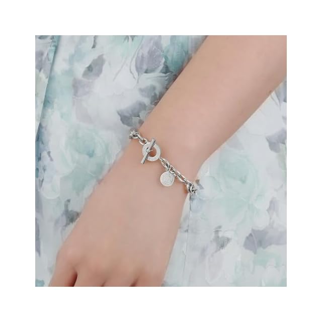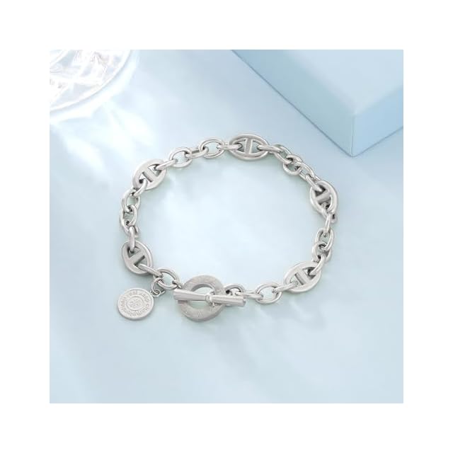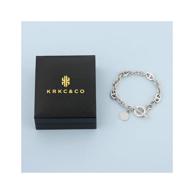 KRKC&CO ブレスレット レディース アズキ/アンカーチェーン マンテルブレスレット 8mm サージカルステンレス K14金メッキ 金属アレルギー対応 男女兼用 人気 アクセサリー プレゼント (シルバー-アンカーチェーン-ロゴプレート, 20) | Trend Design BASE店