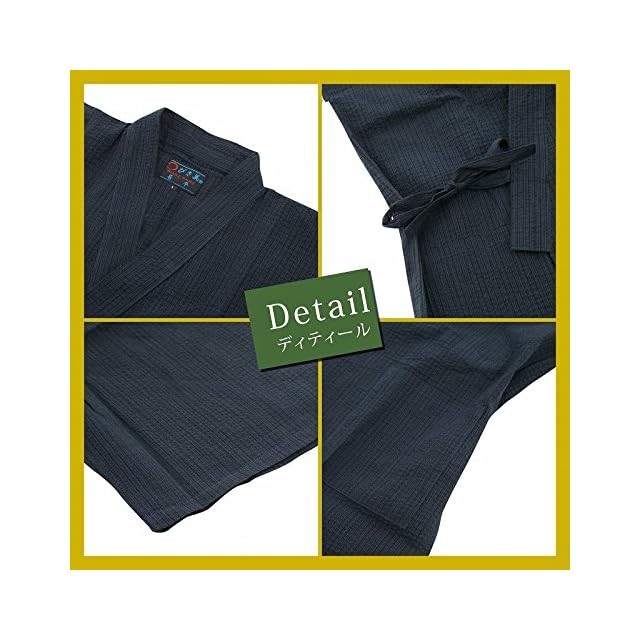 お祭りにもリラックスタイムにもおすすめな涼しいしじら織り甚平に大判捺染プリントで柄を入れました。 <br> 大判でかっこよく、遠くからでも目立ちます。<br> <br> 夏にはとても涼しいしじら織り甚平が大人気です。 上下セットです。<br> 室内での普段着として、また、お祭り用としても1枚持っていると大変便利です。 <br>紐を結ぶだけなので着脱も簡単です。湯上りやリラックスタイムにもおすすめ! <br> <br> ※ポケットが、上着の左前側に一つと右の内側に一つ、ズボンの左右前側に一つずつと右後ろ側に一つ付いています。 <br> <br> ズボンはファスナー付で、紐もついていますので、調節も可能です。 <br> <br> サイズ <br>M 身長165cm~175cm ウエスト76cm~84cm <br> L 身長175cm~185cm ウエスト84cm~94cm <br> LL 身長175cm~185cm ウエスト94cm~104cm <br> 3L 身長180cm~190cm ウエスト97cm~110cm <br> 4L 身長180cm~190cm ウエスト107cm~120cm <br> 5L 身長180cm~190cm ウエスト117cm~130cm <br> 組成表示 綿100% <br> <br> 縫製 中国 柄入れ 日本 <br> <br> ----------お取り扱いについて--------------- <br> ●この製品は摩擦等により、移染しやすいので十分注意して下さい。 <br> ●出来るだけ、白い物、薄い色物との着合わせは避けるようお願いします。 <br> ●洗濯の際、色が落ちますので他のものと分けて洗濯するようお願いします。洗濯後は形をととのえてすぐに干して下さい。移染しますので他の製品と分けて保管して下さい。 <br> ●漂白剤のご使用はお避け下さい。 <br> ●タンブラー乾燥はお避け下さい。 <br>甚平・作務衣は贈り物、お中元、父の日などにも人気です。