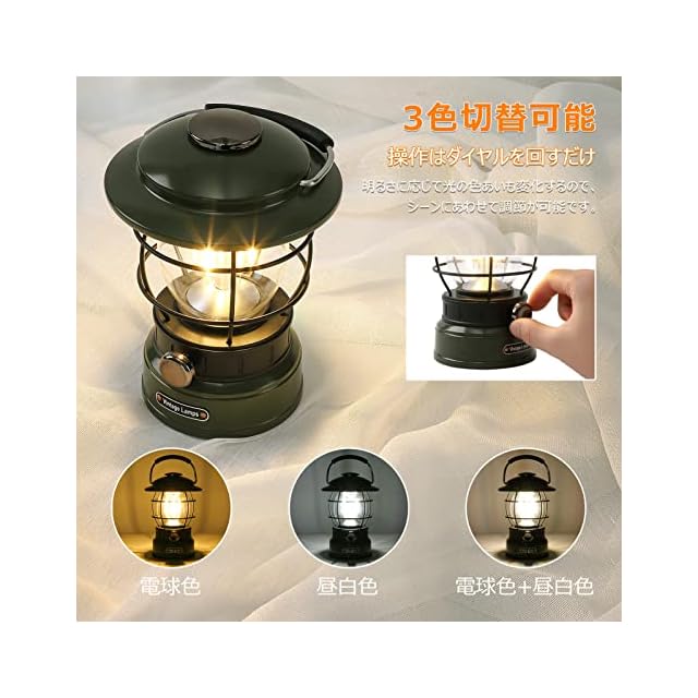 Litake LED ランタン 充電式 レトロ ledランタン 無段階調光 3色切り替え 5200mAh 600lm 120時間点灯 キャンプライト 防災 キャンプ アウトドア オリーブグリーン