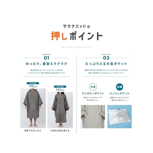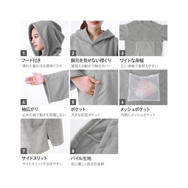 こんな時に便利? プール、キャンプ、ビーチ、お風呂上りにも? どこでも簡単に使えるオーバーサイズのサーフポンチョ!<BR>細かいディティールにもこだわったデザインで使いやすさも◎<BR>パイル生地だから吸水性は抜群!濡れたままでも楽々ドライ!<BR>透ける心配なしっ!一目を気にせず着替えることも可能☆<BR>内側にはメッシュポケットが付いてるから脱いだ水着などをそのまま収納することもできます!<BR>---------------------------------------- 色移りに関するご注意<BR>本商品は、色鮮やかな染色を施しております。そのため、洗濯や摩擦により他の衣類や布製品に色移りする可能性があります。以下の点にご注意ください。<BR>・初めてご使用の際は、単独での洗濯をお勧めします。<BR>・洗濯時には、冷水を使用し、色の移りやすい製品と一緒に洗わないようご注意ください。<BR>・長時間の濡れた状態での放置は避けてください。<BR>・洗濯後はすぐに形を整えて陰干ししてください。<BR>お客様のご理解とご協力をお願い申し上げます。