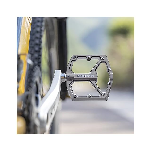 ROCKBROS(ロックブロス)自転車ペダル 軽量 フラットペダル アルミ合金 ロードバイク/クロスバイク/mtbなど用 プラットフォーム 滑り止め ベアリングシール 9/16" 2個セット チタン色 | Trend Design BASE店