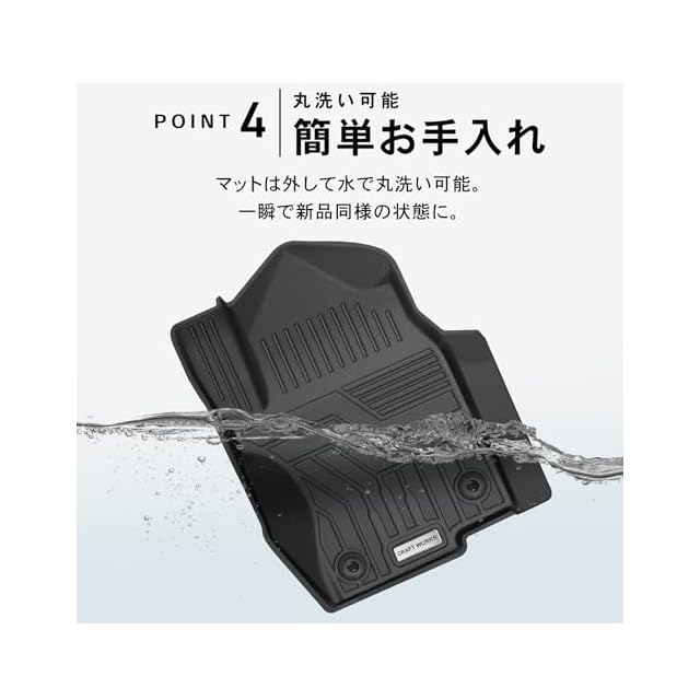 POINT.2 「防水・防汚・防臭」 マットが汚れたら水拭き、水洗いOK。また耐候性に優れ、長時間使用しても表面劣化が起こりません。防水設計、衝撃と水気から保護し、耐水性と耐久性に優れた素材を使用し、取り外してお手入れも簡単。POINT.3 「3D立体構造」 マットは完全防水&3D立体構造となっているため水や汚れを一切外に逃しません。 適度なクリップ力も備えているため雨の日でも問題ありません。