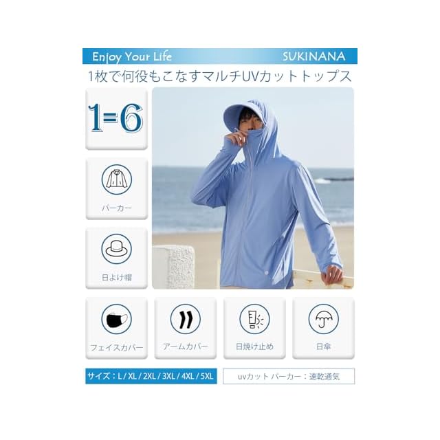 商品名:[SUKINANA] ラッシュガード メンズ UVカットパーカー 夏服 UPF50+ 日焼け対策ウェア アウター ラッシュパーカー 長袖 フード付き 冷感素材 軽量 通気性 シンプル おしゃれ (JP, アルファベット, 5XL, ブルー)