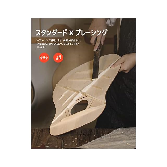 【41インチカッタウェイ】Donnerギターはカッタウェイデザインを採用しており、ドレッドノートよりハイフレットへの届きがやすく、ソロギター等でハイフレットを度々使用する演奏スタイルには大きなメリットです。41インチの標準サイズはアコースティックギターの美しい生の音を最大限に引き出し、すべての年齢の人々に適しています。