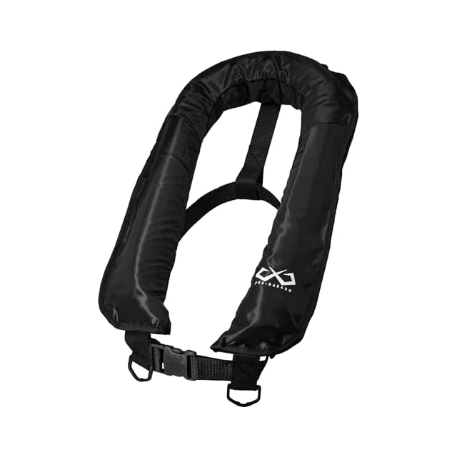 首掛け式のライフジャケットは一般的なベルトタイプのライフジャケットより浮力が高く設計されている為、初心者から上級者まで幅広いプレーヤー様にご着用頂けます。また、ライフジャケットが身体全体を特に上半身を包み込む形で膨張しますので、万が一の落水時の水上での安定感がある事も大きな特徴になっております。ライフジャケットに使用しているボンベは33gと搭載しております。
