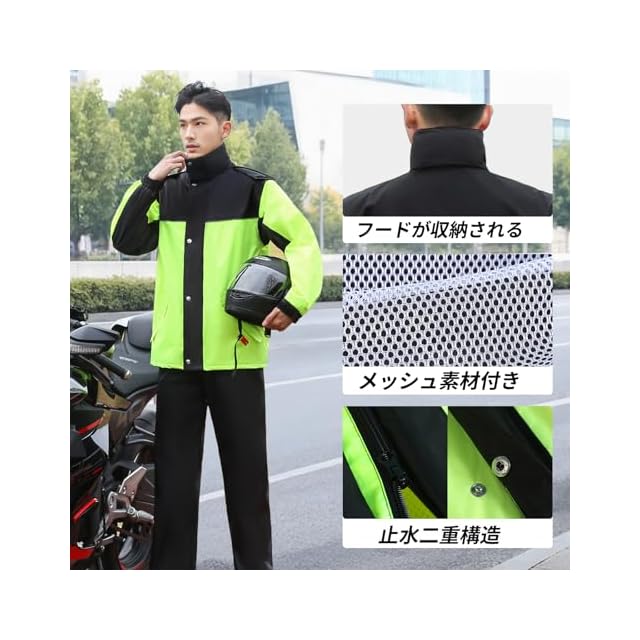 【幅広い用途のレインコート 】バイク用に設計されます。レインブーツと併用してほとんど濡れません。通学、ヘルメット対応、バイク、自転車、通勤、散歩、アウトドア、釣り、作業、ゴルフ、除雪などに最適。