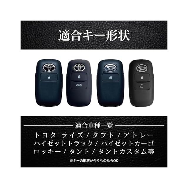 【適合車種】 ダイハツ ロッキー DAIHATSU ROCKY / トヨタ ライズ TOYOTA RAIZE / 新型タフト TAFT ( 青空SUV ) / タント カスタム LA650S LA660S(2019年7月~) / トヨタ TOYOTA ルーミー ROOMY/トール/アトレー (2020年9月〜)など。 スマートキー形状が一致する商品であれば適応可能です。 ※グレードや年式によっては適合しない場合がございますので、お使いのスマートキー形状を必ずご確認くださいませ。(商品画像ご参照)