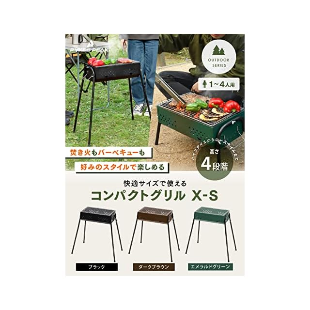 PYKES PEAK(パイクスピーク) バーベキューコンロ BBQ コンロ 大型 大人数 1人~4人用 コンパクト アウトドア キャンプ 4段階高さ調整 COMPACT GRILL X-S ブラック