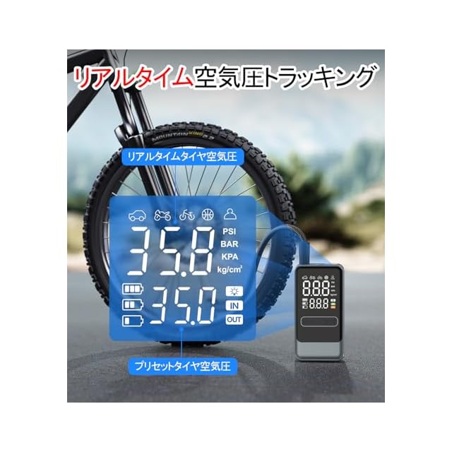 【4+Nスマートモード&圧力単位切替可能】この自転車 空気入れ 電動は、4+Nのスマートモードをセットしており、車のタイヤ(36PSI)、バイクのタイヤ(35PSI)、自転車のタイヤ(45PSI)、ボール(8PSI)の充気モードがプリセットされており、面倒な圧力設定を手動で調整する必要がなく、初心者でも誰でも簡単に使用できます。さらに、Nモード(3-150PSI)が追加されており、自分で希望の圧力を設定できる自由度を提供します。また、空気入れの圧力単位の切り替え機能も便利。PSI、BAR、KPA、KG/CM²の4つの圧力単位が選べ、どの国や地域でも使用できる汎用性備えています。シーンやアイテムに合わせて最適な充填を簡単に実現でき、使い勝手の良さが際立っています。