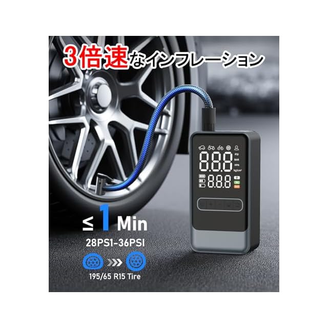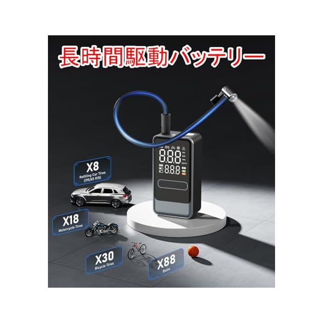 【多機能空気入れ&1年間品質】空気入れには高輝度LED緊急手電が内蔵されており、3つの照明モードあり(通常の常亮モード、点滅モード、SOS信号モード)暗い場所でも十分な明るさを確保でき、夜間作業や車内での充気作業が安全に行えます。また、電動空気入れ過熱防止機能やオーバーチャージ防止機能を備え、安全に使用する。緊急充電機能を搭載しており、緊急時や非常時に非常に役立ちます。1年間品質、万が一、初期不良や使用中に問題が発生した場合でも、ご遠慮なく連絡してください。