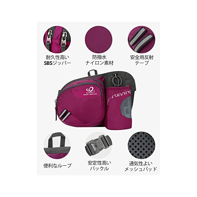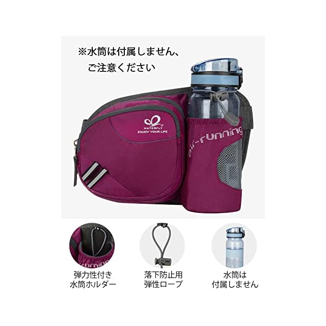 商品名:WATERFLY(ウォーターフライ) ウエストバッグ ウェストポーチ アウトドア 水筒ポーチ付き 男女兼用 ランニング ウォーキング ジョギング 登山 散歩 軽量 通気 メンズ レディース