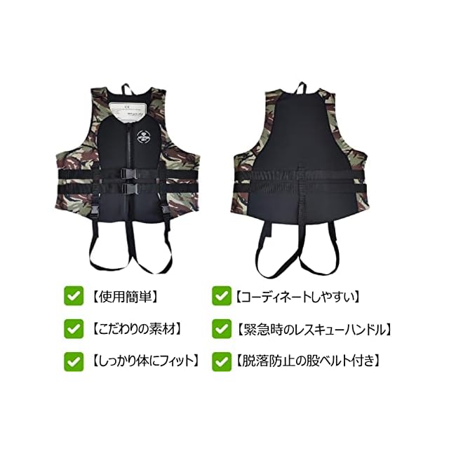 ✅【安心安全・浮力抜群】国際的な安全認証CE認証取得済で、浮力は7.5 kg以上となり、体重が110kgまでの方もしっかり守ります。万が一の 落水時も体を浮き上がり、釣りなどのアウトドア活動を安心して楽しめます。また、腰までに長く改良された二本の股ベルトで、すり抜け防止機能を加 え、より一層安全性を高め心強くご利用頂けます。