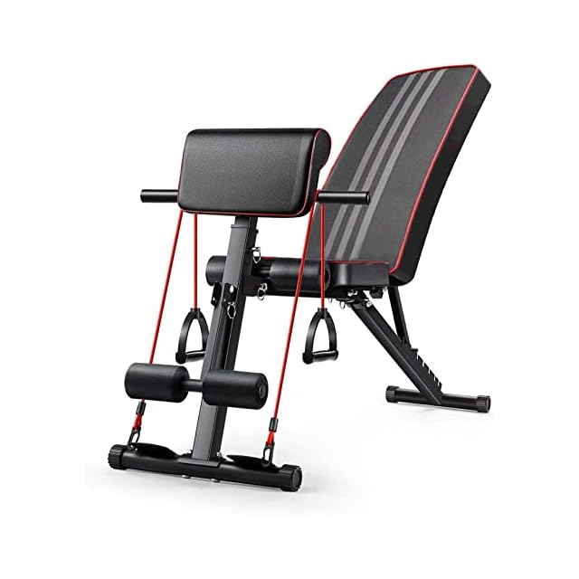 トレーニングベンチ マルチシットアップベンチ 折り畳み フラットベンチ 角度調節簡単 腹筋 背筋 ダンベル ベンチ 収納便利 (KKS-赤)