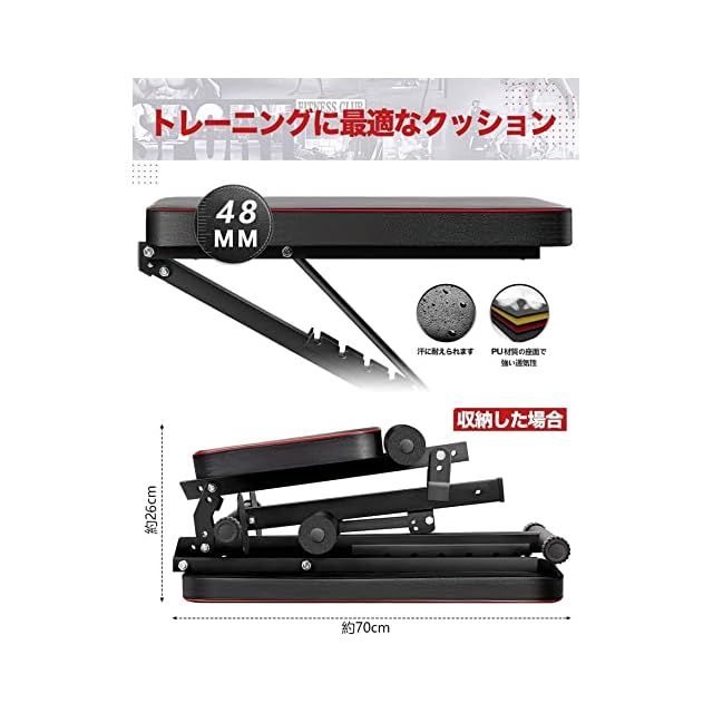 商品名:トレーニングベンチ マルチシットアップベンチ 折り畳み フラットベンチ 角度調節簡単 腹筋 背筋 ダンベル ベンチ 収納便利 (KKS-赤)
