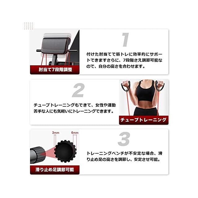 耐荷重構造:ISO 9001認定工場にて生産,構造設計しっかりとした耐久性のあるチューブ構造は、トレーニングの安定性と安全性をさらに高めます。高密度フォームパディングでより快適になります。前脚に拡張アタッチメントのレッグカールが付きます。レッグカールも2段階調整でき、柔らかいスポンジでお客様の脚を保護、ハードなトレーニングしても痛くなりません。