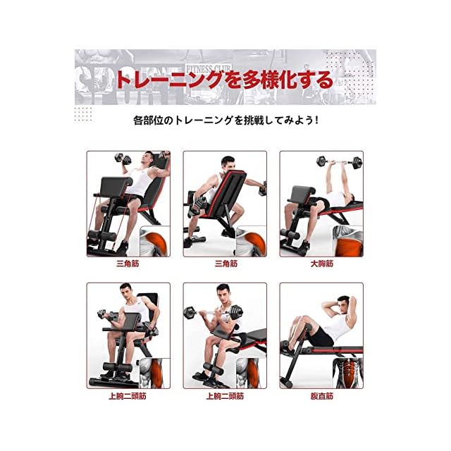 全身トレーニングに最適:このマルチトレーニングベンチで様々なトレーニングができ、上腕二頭筋カール、ベンチプレス、ショルダープレス、腹筋トレーニング、脚筋肉トレーニングなどに最適です。自宅やジムでの全身トレーニングに最適なデバイスです