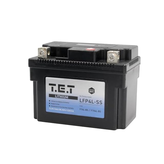 商品名:T.E.T LFP4L-SS 超軽量 バイク バッテリー リチウムイオンバッテリーYT4L-BS YTX4L-BS 専用 3Ah 120CCA 38.4Wh BMS電圧計搭載 LiFePO4 バイク用TETバッテリー長期(LFP4L-SS)