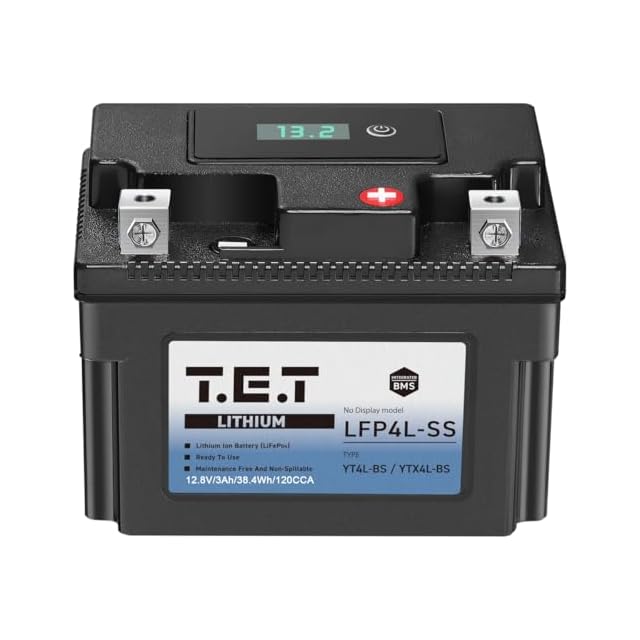 T.E.T LFP4L-SS 超軽量 バイク バッテリー リチウムイオンバッテリーYT4L-BS YTX4L-BS 専用 3Ah 120CCA 38.4Wh BMS電圧計搭載 LiFePO4 バイク用TETバッテリー長期(LFP4L-SS) | Trend Design BASE店
