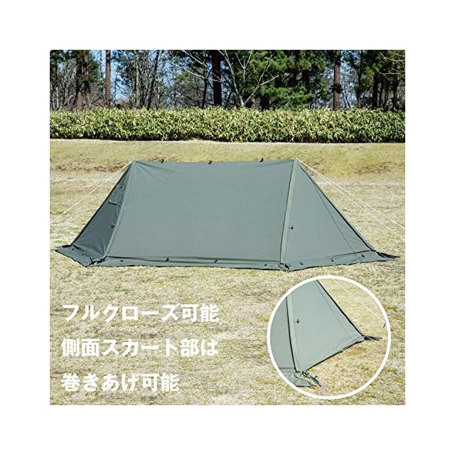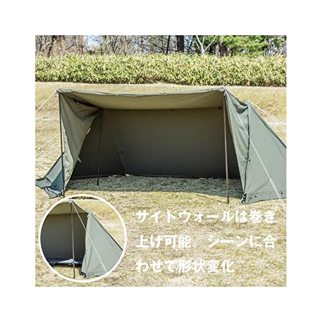商品名:BUNDOK(バンドック)ソロ ベース EX BDK-79EX スカート付 サイドウォール付 パップテント 軍幕 【1人用】 カーキ 一人用