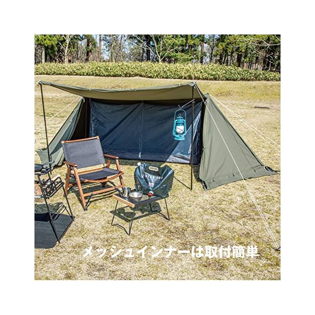材質:フライ/コットン混紡生地(ポリエステル65%・綿35%)・インナー/ポリエステルメッシュ・フロア/ポリエステル・フレーム/アルミ合金
