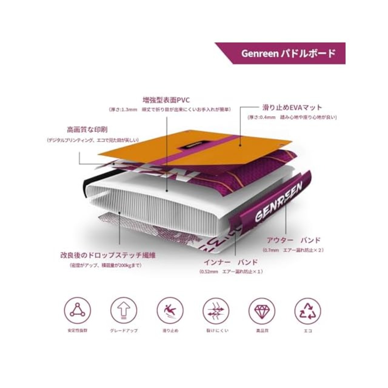 商品タイプ:GENREEN sup インフレータブル,スタンドアップパドルボード,パドルボード インフレータブル,supボード,パドルボード,sup パドルボード,サップボード,sup,ワイドなパドルボード,補強型素材,335*83*15cm(モンステラ・ピンク)