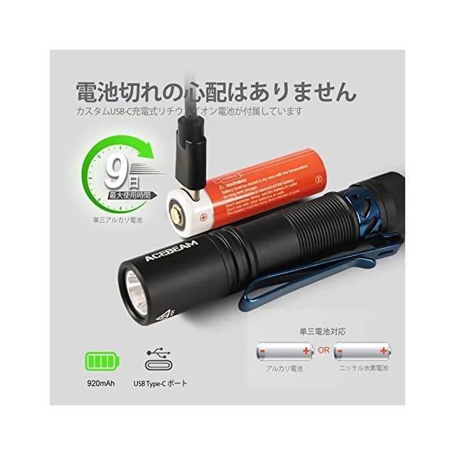 商品名:ACEBEAM Pokelit AA 懐中電灯 小型 軽量 強力 550ルーメン 高演色性 Ra90 3段階調光 500回以上充電可能です 1x単三に対応 IP68防水 最大9日の実行時間 安定したパフォーマンス かいちゅうでんとう ledライト フラッシュライト 防災 護身用 ハンディライト 日常の持ち運び、アウトドア、登山、地震災害などに適しています【五年】