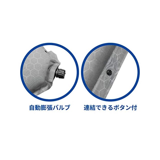 寝心地、断熱性に優れた7cm厚インフレーターマット空気入れの手間がかからない自動膨張(自動膨張だけでは完全に膨らみません。空気を吹き込んで硬さを調節してください)シングルどうしはボタンで連結可能シーンに応じて使い分けができる片面スエード仕様