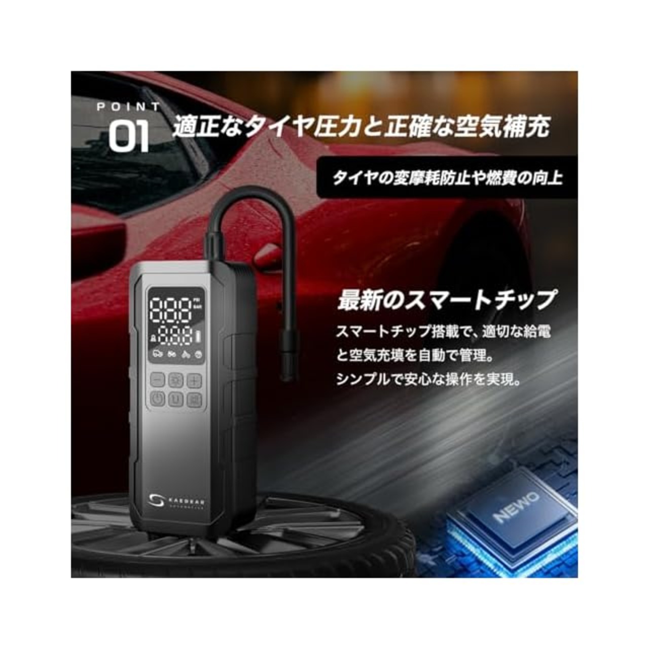 商品名:Kaedear auto motive(カエディアオートモーティブ) 電動 空気入れ エアポンプ 車用 くうきいれ バイク 自転車 空気圧調整 コンプレッサー タイヤ メンテナンス モバイルバッテリー 機能 LEDライト自動車 モバイルコンプレッサー KAM-AP2