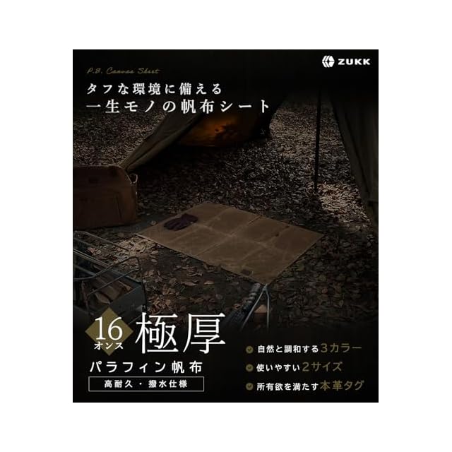 商品名:ZUKK 帆布シート グランドシート キャンプ 帆布 パラフィン 本革 100×68cm ソロ 16oz キャンバス 厚手 撥水 防水 高耐久 テントシート マルチシート レジャーシート (コヨーテブラウン, S)