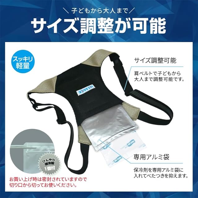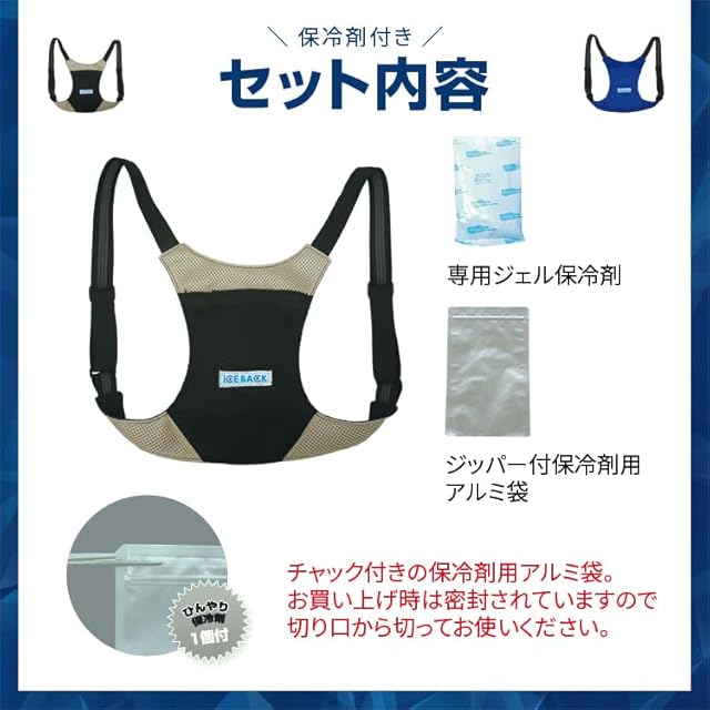商品名:熱中症対策グッズ【BR-530 ICE BACK アイスバック2 カラー:ブルー】専用保冷剤と気化熱効果で背中を冷やす!速乾素材使用