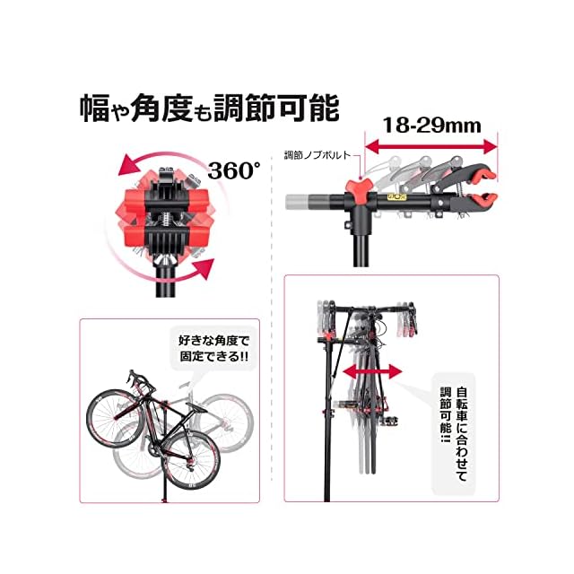 CXWXC 自転車 メンテナンススタンド ロードバイク ワークスタンド 高さ・角度無段階調節可 耐荷重30KG ハンドル支えバー/工具トレー付き 整備スタンド (ブラック) | Trend Design BASE店
