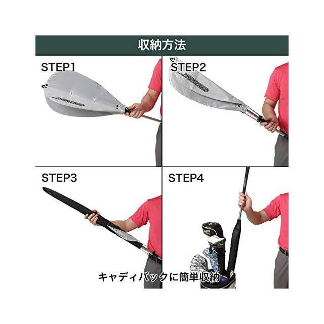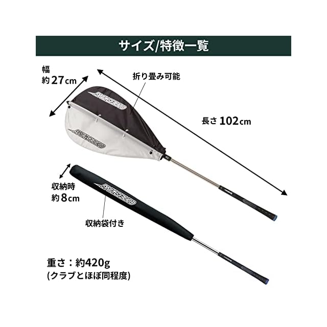 【空気抵抗を感じながら安定したスイング軸を鍛える素振り用練習器具】 初心者や女性の方でも振れる、ほどよい抵抗感、スイング軸の安定とスクエアなインパクトが自然に身に付くことによって、ミート率、つかまり、ヘッドスピードUP等が期待でき、それらが総合的に作用して飛距離アップへと導きます