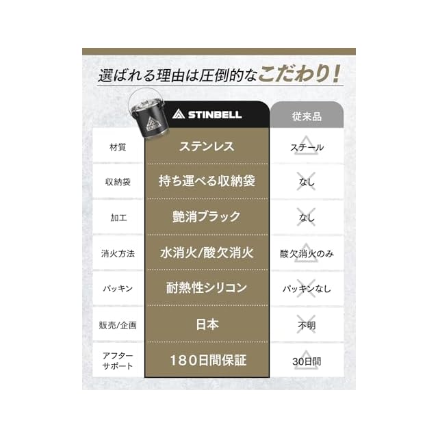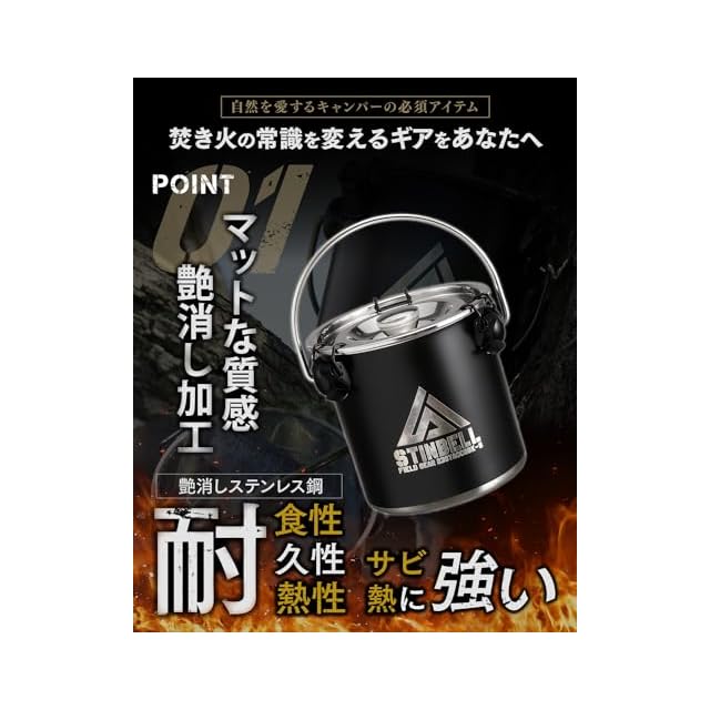【サビ・熱に強いステンレス鋼】耐食性、耐久性、耐熱性に優れたスレンレス鋼を使用した火消しつぼ。サビ・熱に強いタフなキャンプギアになります。自然を愛するキャンパーの必須アイテムです。デイキャンプやオートキャンプはもちろん、自宅等でのBBQにも最適な火消しつぼ