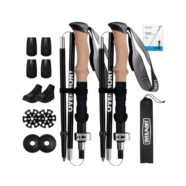 Overmont トレッキングポール A7075アルミ製 2本セット カーボン 2本セット 超軽量 218g 105-125伸縮 レッキングステッキ 超軽量 登山杖 登山用ストック カーボン ステッキ ウォーキングポール 航空品質ポール