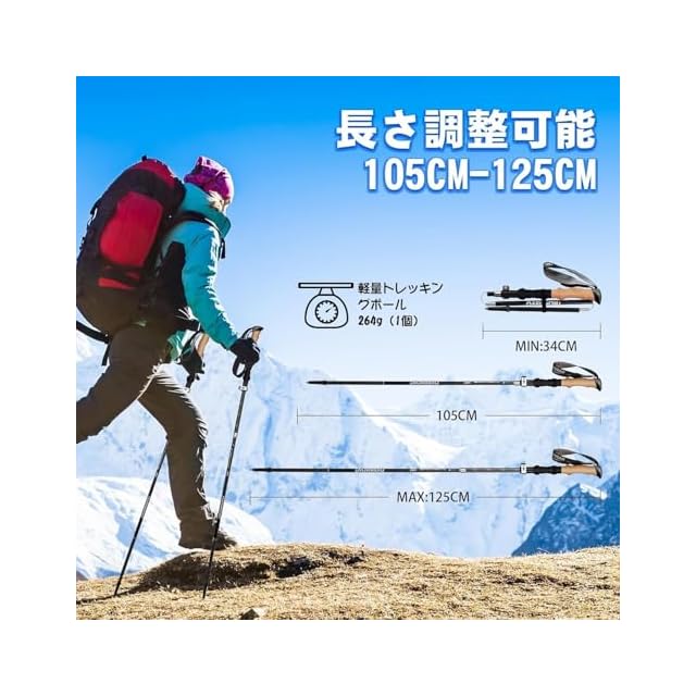 商品名:Overmont トレッキングポール A7075アルミ製 2本セット カーボン 2本セット 超軽量 218g 105-125伸縮 レッキングステッキ 超軽量 登山杖 登山用ストック カーボン ステッキ ウォーキングポール 航空品質ポール