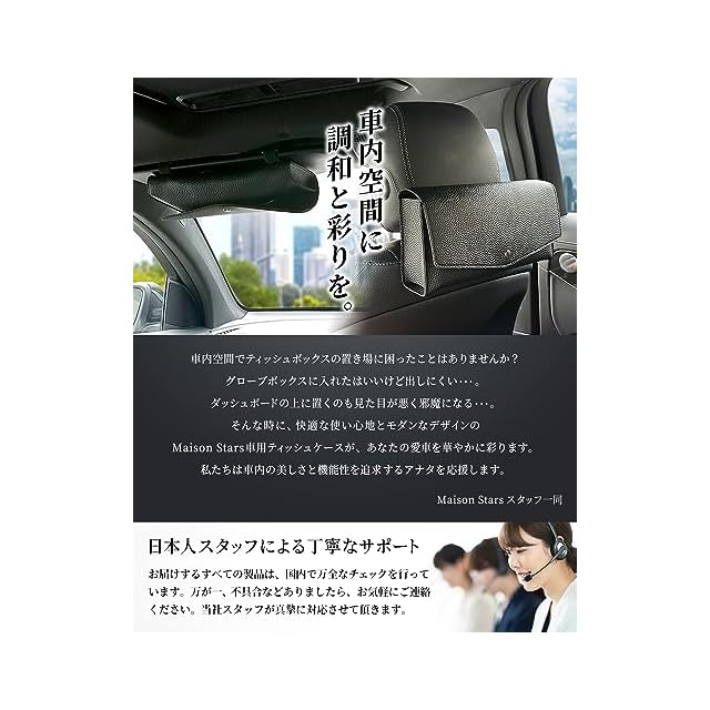 商品名:【2way仕様】箱ごと入る 車 ティッシュホルダー ティッシュケース サンバイザー ヘッドレスト カー用品 便利グッズ 車内 (厚型(箱用), 黒)